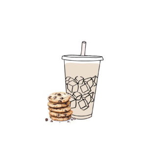 Iced latte with brown sugar and cookie butter flavors topped with cookie butter cold foam.